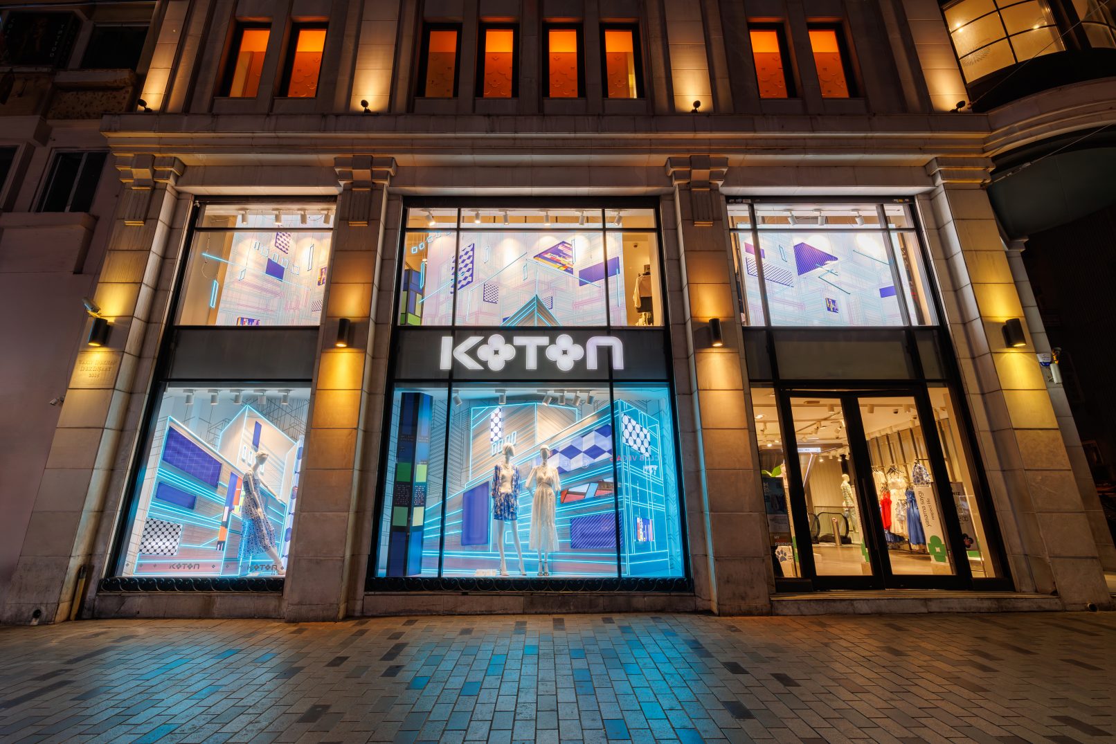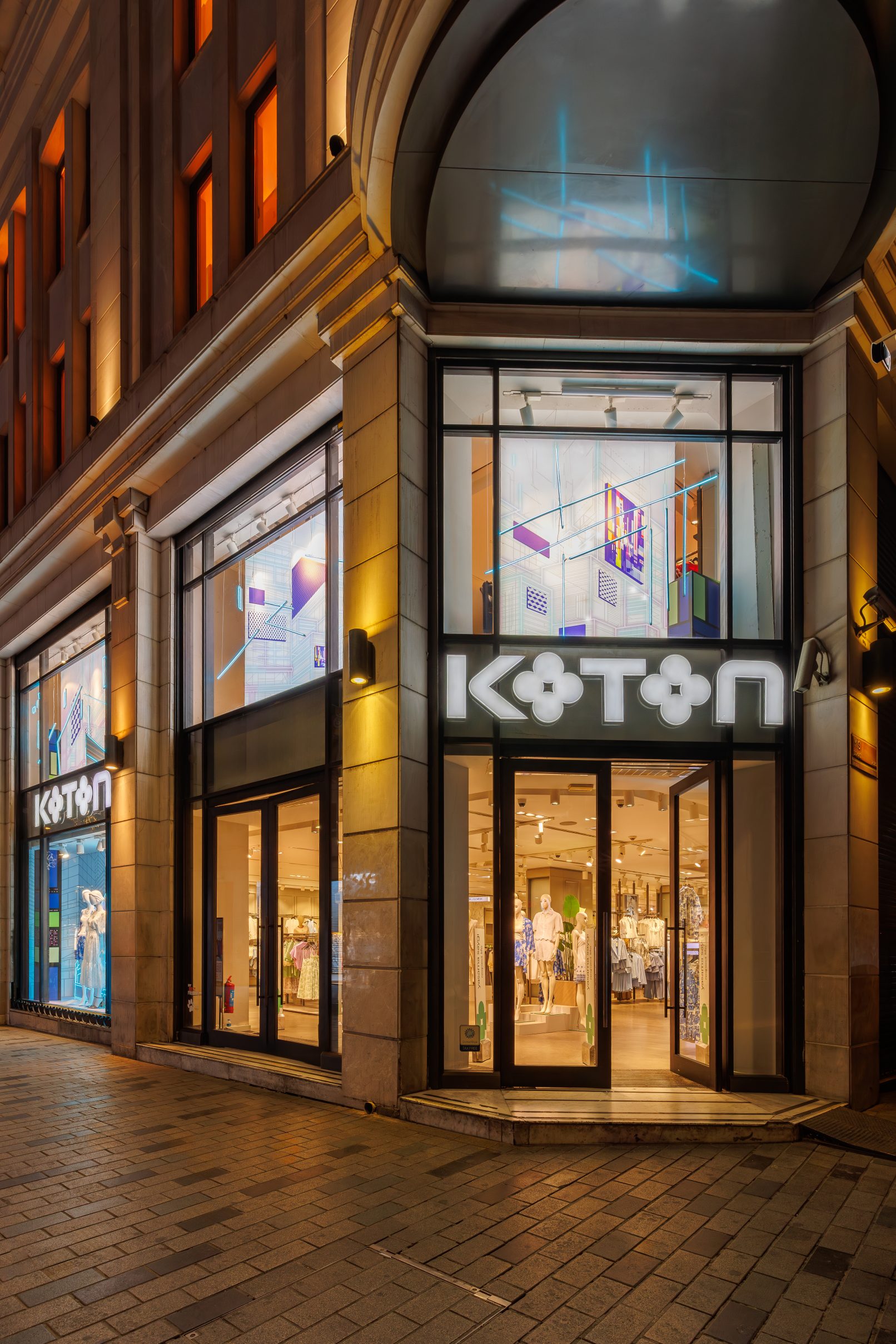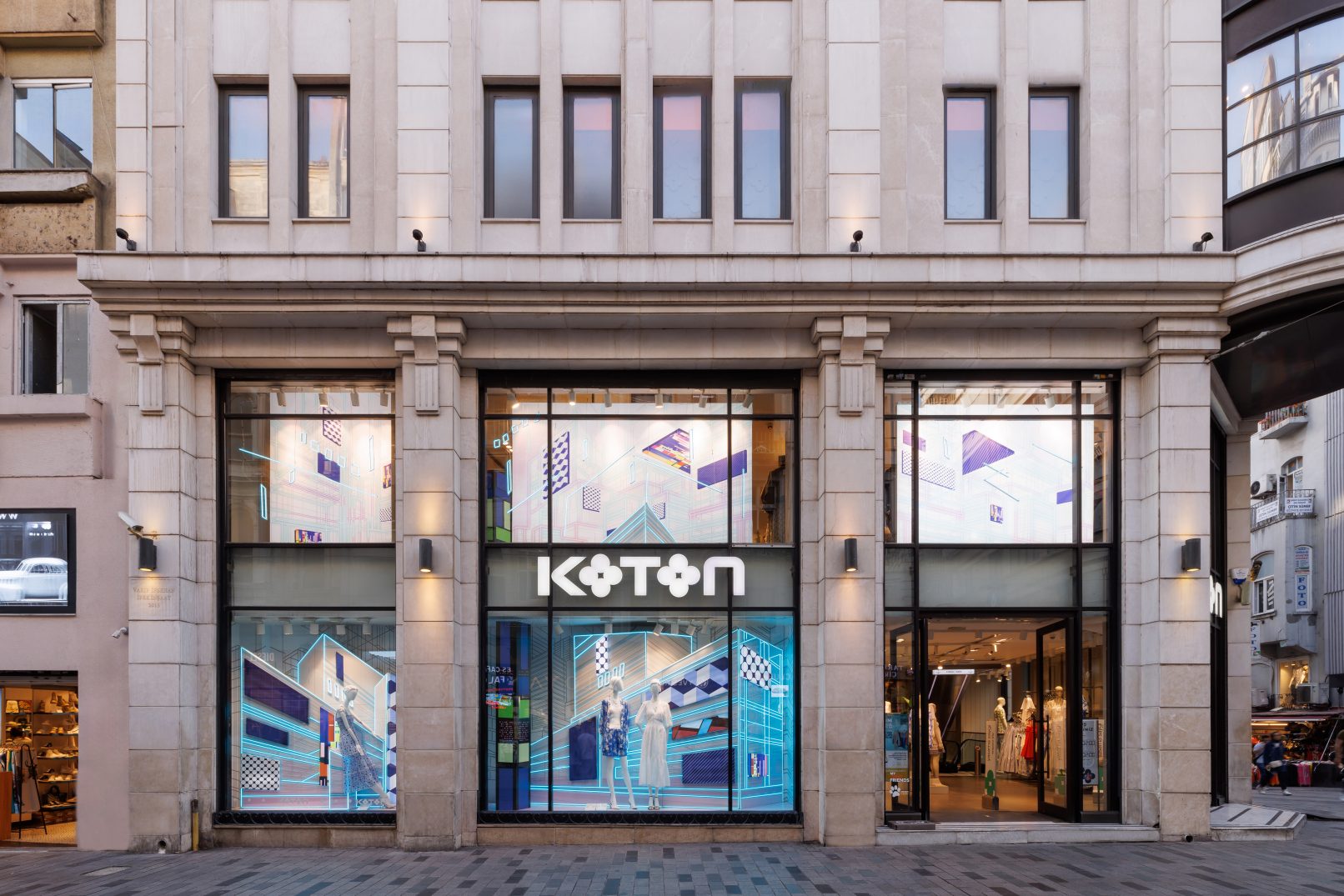For Koton’s flagship store on İstiklal Street, I aimed to create a window design that reflects the brand’s urban, bold, and trend-setting identity. In our first collaboration for the Summer 2024 season, I envisioned a contemporary concept infused with the spirit of both the present and the future, brought to life through vibrant neon lights.