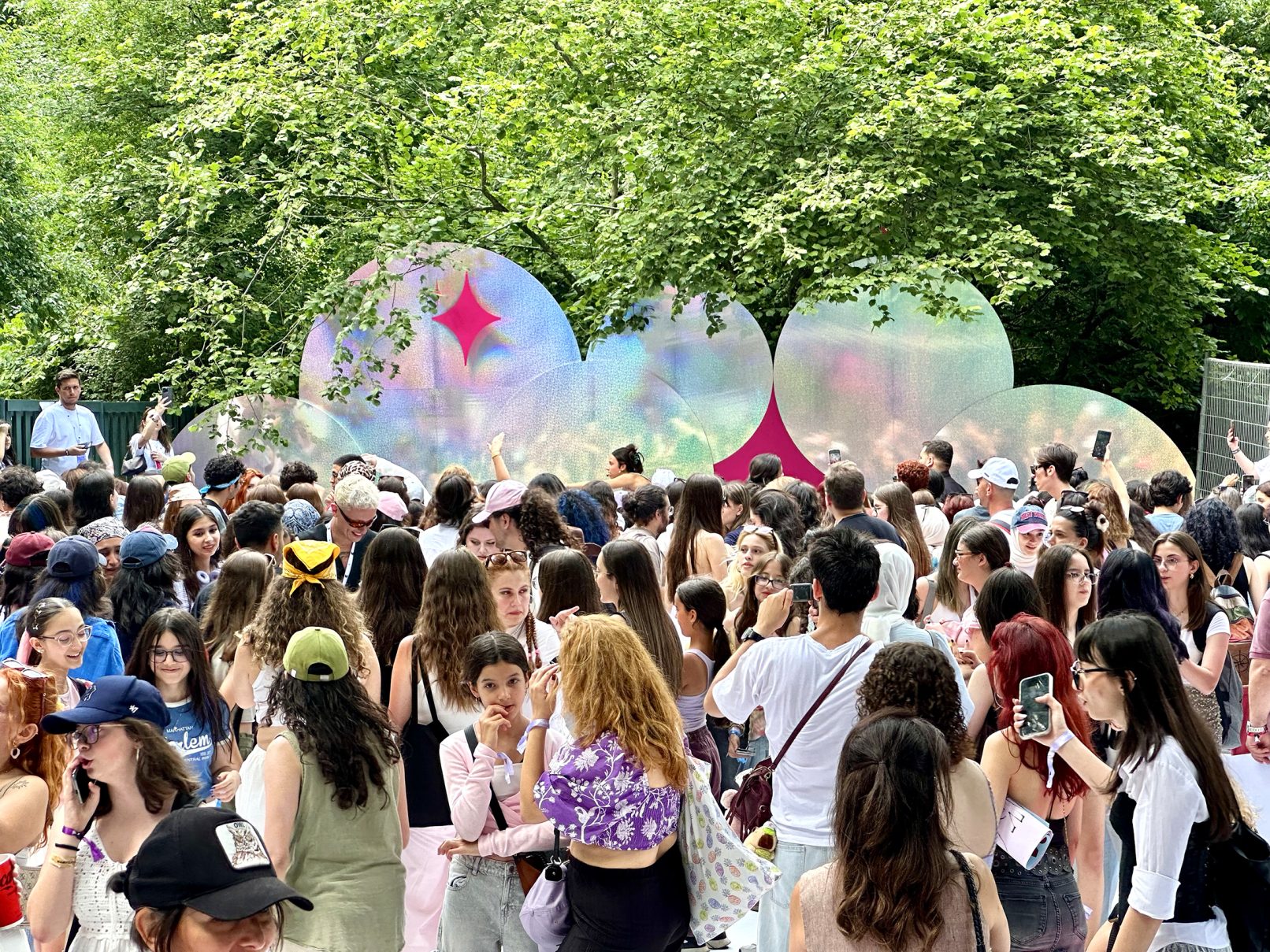 The area featured a refined and minimalistic color palette, using only three primary colors: pink, white, and mirror reflections. This combination created an atmosphere both minimalist and vibrant. From the entrance arches to mirrored disco panels, hanging plexi decorations, and the “Let’s Dance” floor decal, visitors were drawn into a world designed purely for dancing.