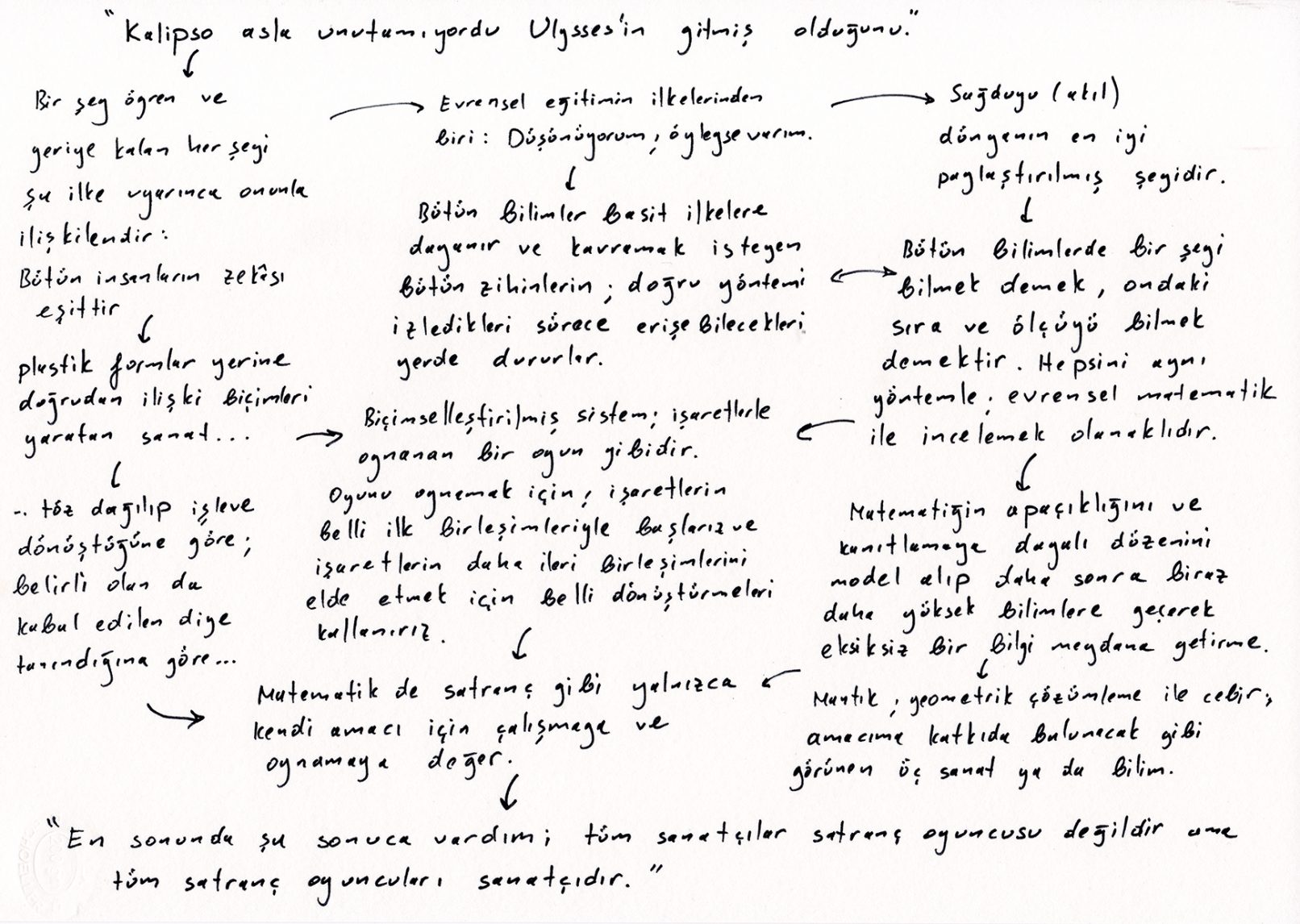 “Bütün bilimler, sanatlar, anatomi, dinamik vb., hepsi Kalipso kelimesini yaratan zekanın ürünleridir.”